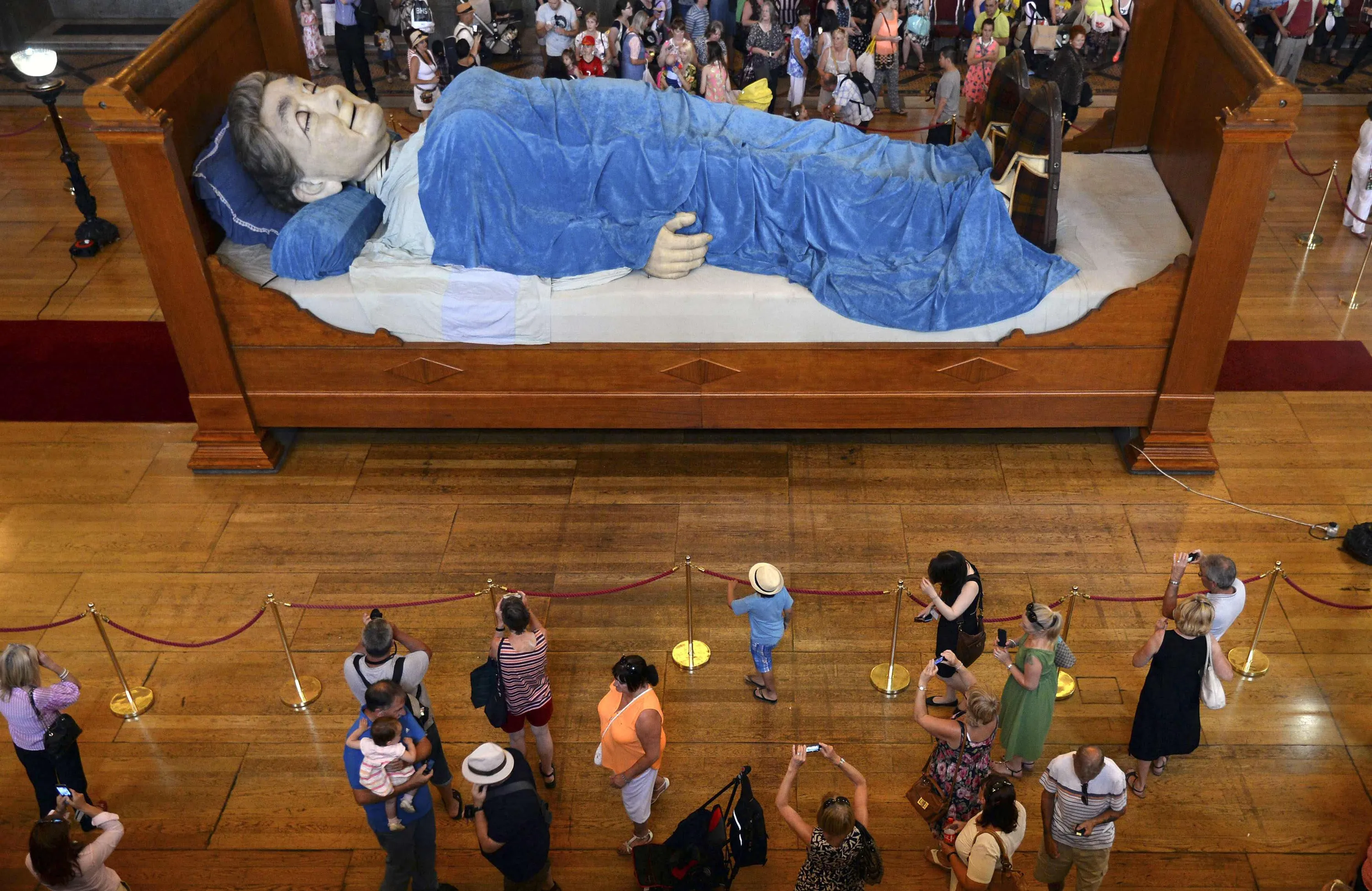 A giant puppet of a grandmother lies on a bed inside St. George's Hall in Liverpool, England, on Jule 23, 2014. The grandmother is one of two giant models made for a World War I commemorative event. (Photo by Nigel Roddis/Reuters)