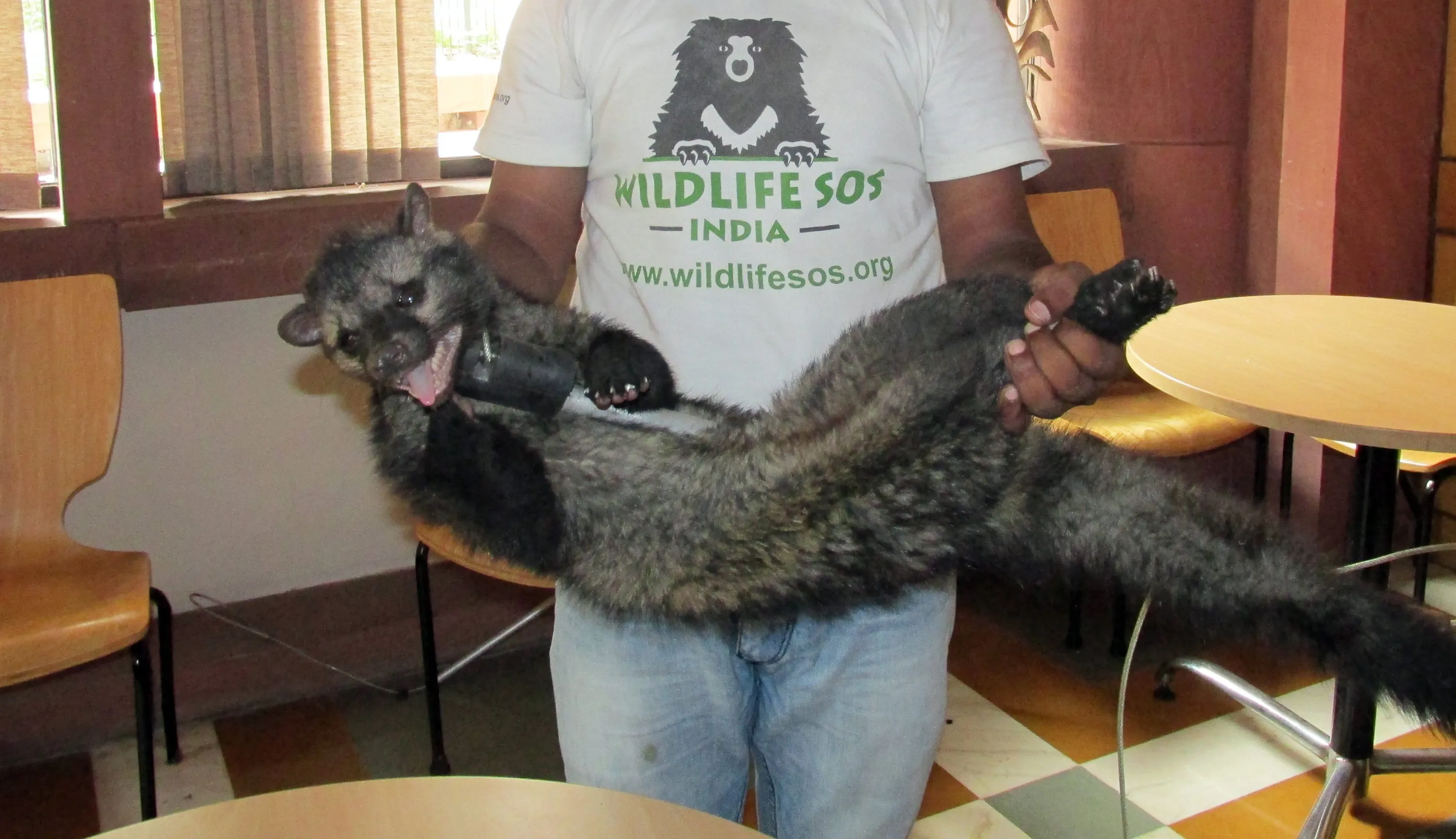 A handout photograph provided by Wildlife SOS shows a civet rescued by New Delhi-based animal rights group from the Indian Parliament house in New Delhi, India, 29 July 2014. Wildlife SOS rescued the shy animal hiding behind a television set, after receiving calls from parliamentary staff. (Photo by EPA/Wildlife SOS)