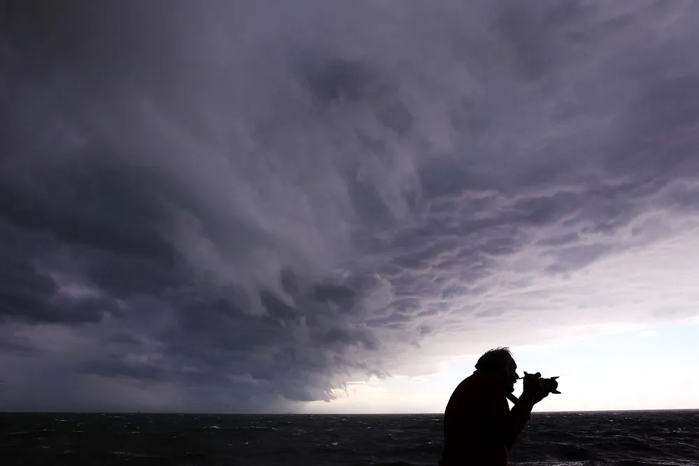 A storm passes by as an amateur photographer captures gigantic waves crashing into Mornington Harbour in Melbourne, Australia, on Jule 31, 2014. (Photo by Michael Dodge/Getty Images)