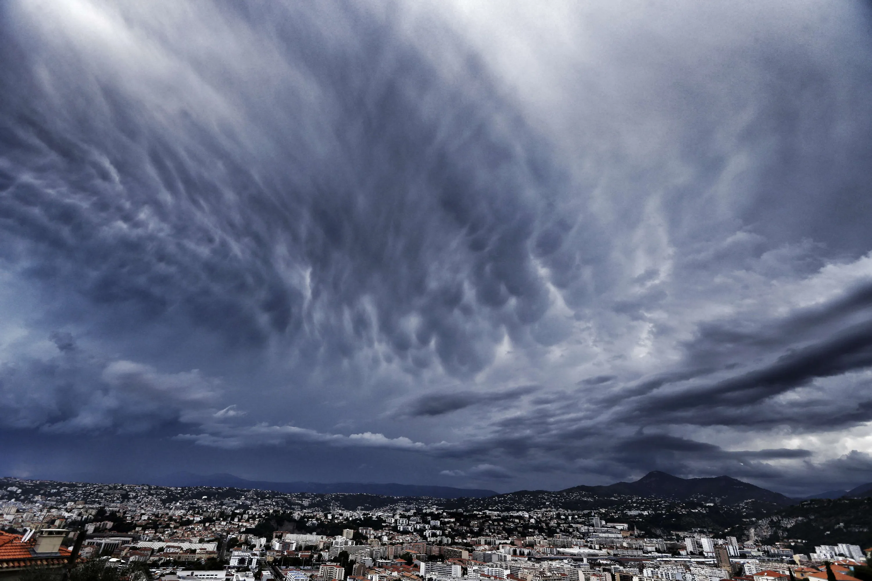 An approaching storm looms over the French riviera city of Nice, southeastern France, on July 29, 2014. (Photo by Valery Hache/AFP Photo)